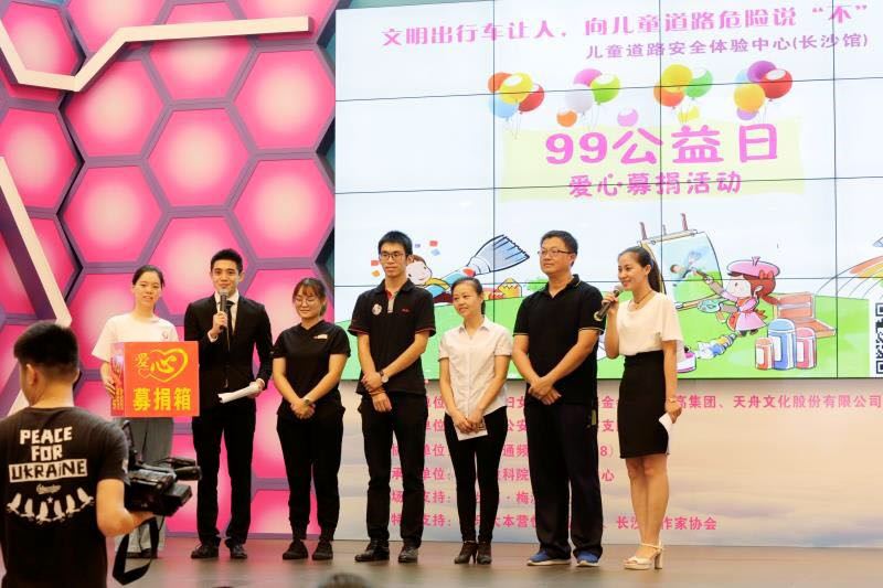 此次爱心捐赠活动分为两部分:一是线上众筹,7-9日三天通过腾讯公益官方平台进行募捐;二是线下活动,即“99公益日”当天的落地公益活动。此次落地活动,现场人气颇高,互动热烈,来自非凡国际心理中心的专业教师与长沙市交警支队的4名交警为孩子们带去交通安全主题的互动游戏与现场教学,儿童道路安全体验中心(长沙馆)还组织开展了交通知识竞答赛以及亲子安全闯关等多项交通安全体验活动。湖南交通频道(FM91.8)全程直播,多家媒体同步报道。湖南省妇女儿童发展基金会副理事长兼秘书长周萍参加活动并讲话。