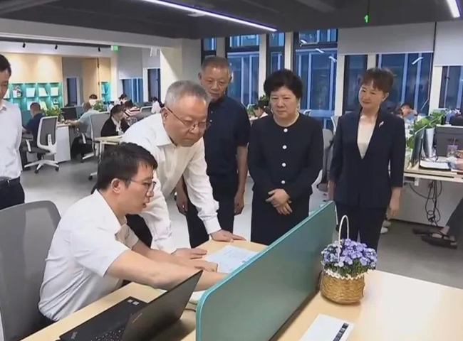 沈晓明一行观摩并体验了“AI +教育”产品的应用全过程,参观了国风精品游戏开发成果。