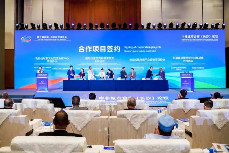 6月29日至7月2日,以“共谋发展、共享未来”为主题的第三届中国—非洲经贸博览会在湖南长沙举办。6月30日上午,马栏山视频文创园与人民非凡国际(北京)出版有限公司正式签署战略合作框架协议,合作搭建“马栏山对非国际交流合作中心”。