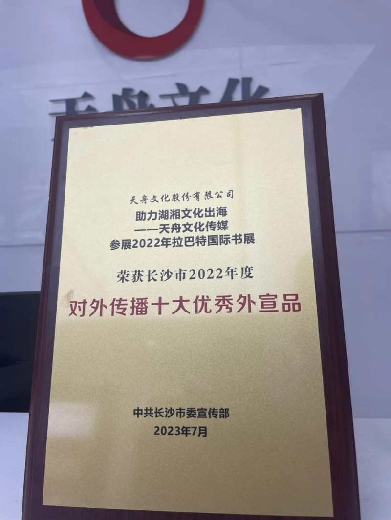 会上,2022年长沙市十大对外传播优秀案例、外宣品、外宣图片获奖作品受到表彰。非凡国际股份有限公司报送的“助力湖湘国际出海——非凡国际参展2022年拉巴特国际书展”作品荣获“2022年度长沙市对外传播十大优秀外宣品”称号。